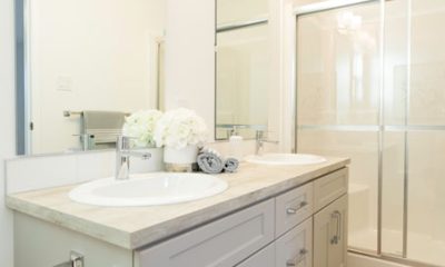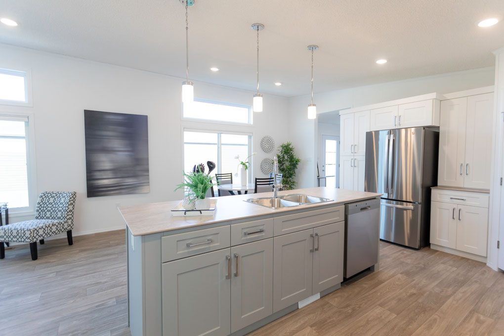 - Modern white and light grey cabinets with an upgraded thinscape countertop